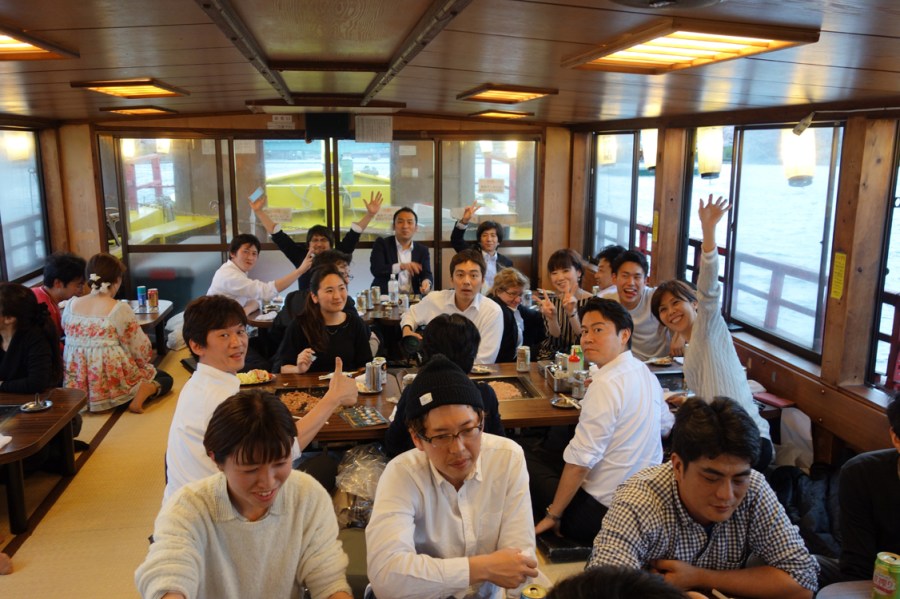 The ‘gang’ of Marketo employees at the last two rows of tables.
