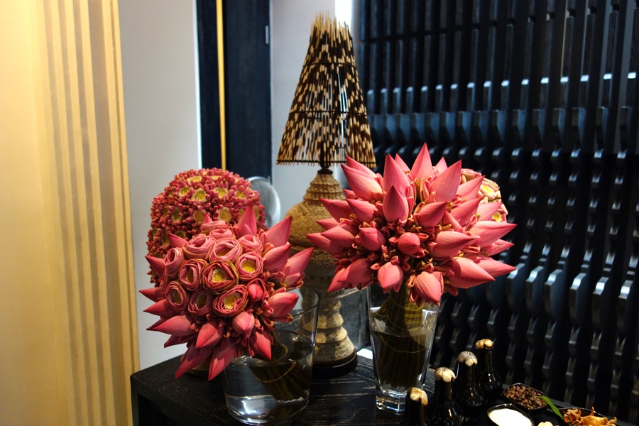 Lotus flowers at the front desk of the hotel. Every day they are changed. The petals are hand-folded.