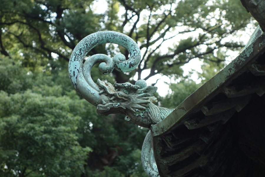 A detail of a dragon on top of one of the more elaborate lanterns.