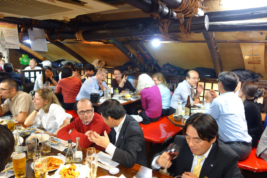 In this wide shot you can see Laurie with Jim Moynihan, Amy, and Jim’s wife Hiroko. Andy’s is directly underneath the JR train tracks in Yurakucho (near Ginza) so it tends to be a bit cramped…all part of the fun. As you can see, nobody else like beer either.