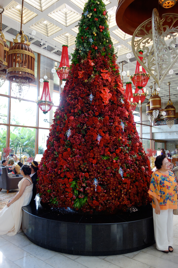 A beautiful Christmas tree in the lobby of the Mandarin Oriental Hotel. All of the flowers are real.