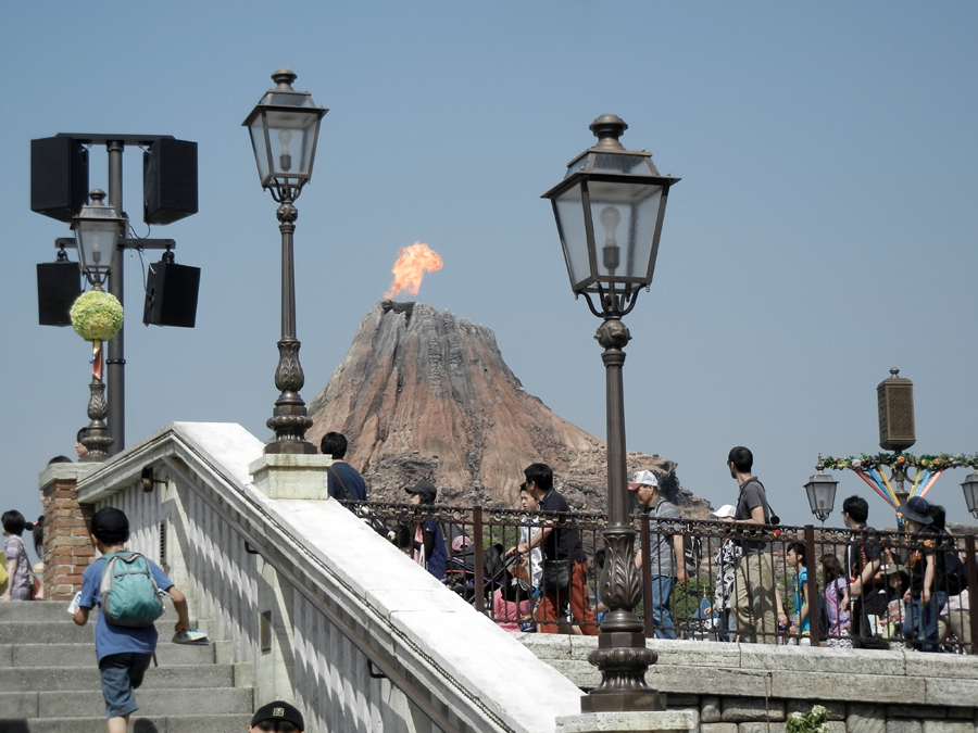 When the Mysterious Island volcano erupts there are lots of flames and LOTS of noise.