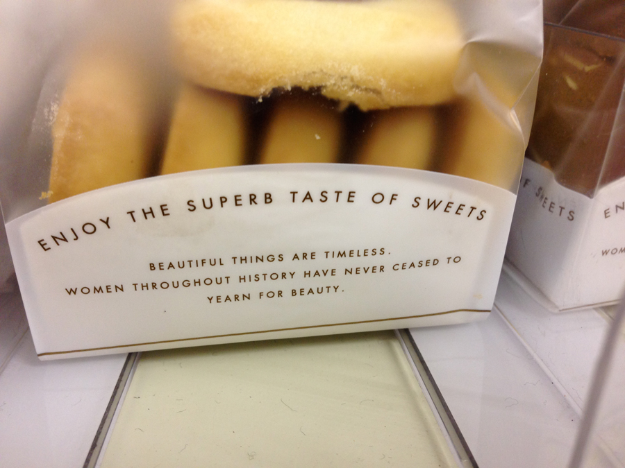 Waiting for the ATM machine at 7-11, I was standing next to a selection of 7-11 brand cookies and treats. All of them had this slogan on the packages. Huh?