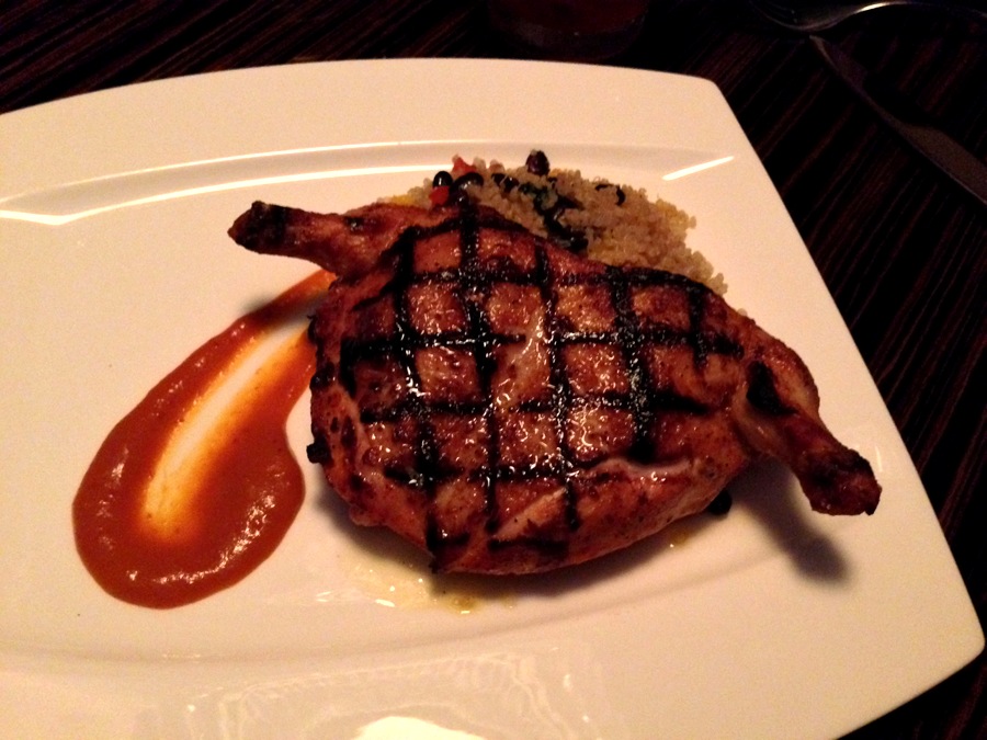 I had the chicken (with perfect grill marks) and pilaf complemented by a delicious, spicy BBQ suace