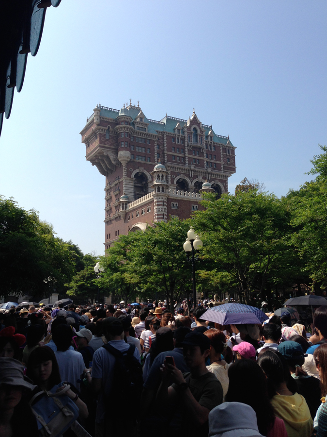 The Tower of Terror awaits. The masses of people are awaiting the Fast Pass kiosks at the wildly popular Toy Story ride.