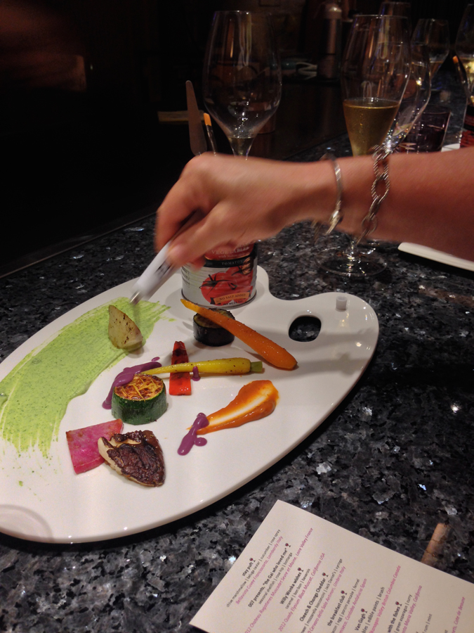 Amy ‘paints’ some sauce from a tube onto her plate palette.