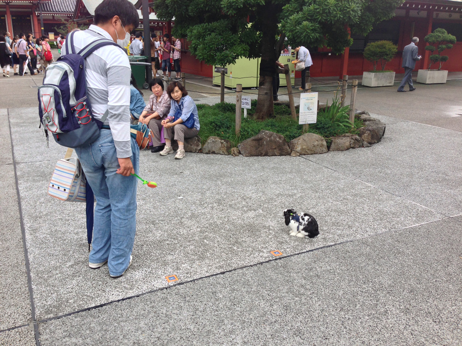 Bunny on a leash anyone? This one was hopping around the Buddhist temple in Asakasa.