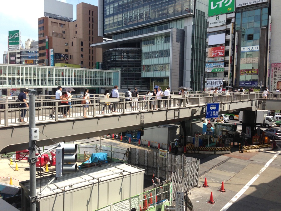Because of all the construction, there are a series of elevated walkways that are used to get around and cross the major roads going through Shibuya station.