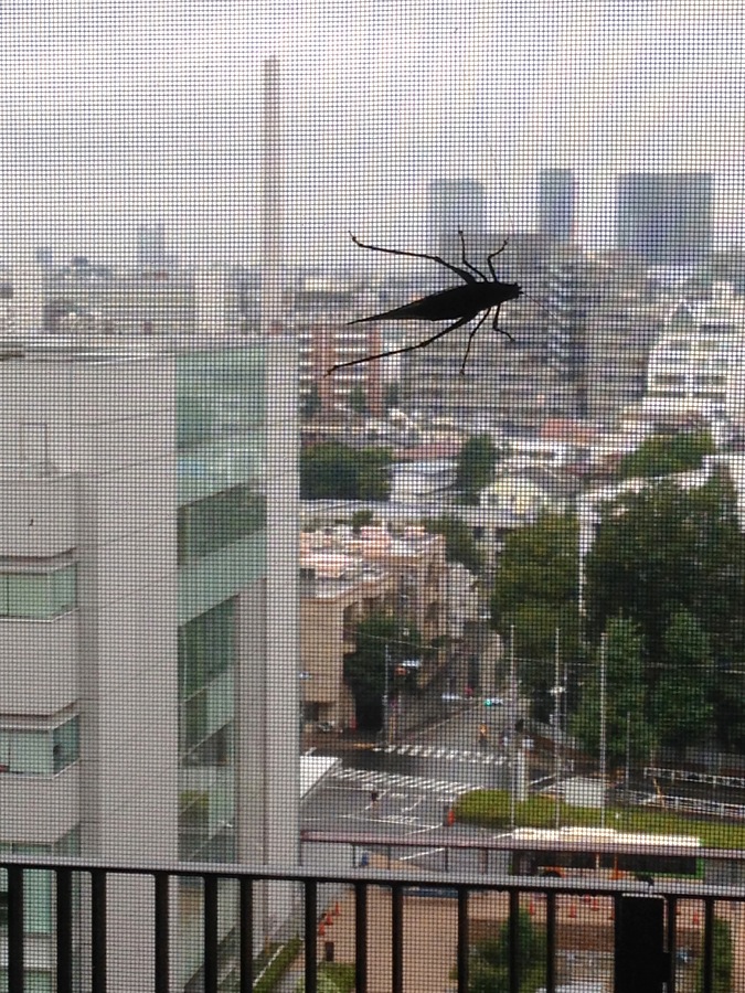 There are monsters in Tokyo…just like in the movies. This big bug was attached to our sliding door screen. I prefer to believe it was eating its way through Ebisu on its way to Shibuya. Where’s Godzilla when you need him?