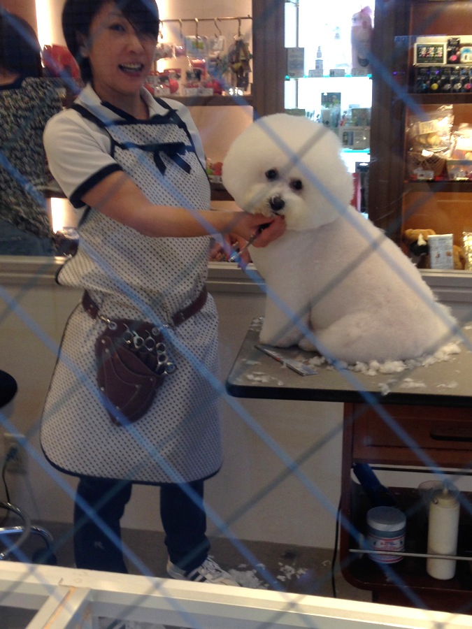 Puffy. We were watching this fluffy monster get a hair cut through the window and the groomer obliged us with a pose.