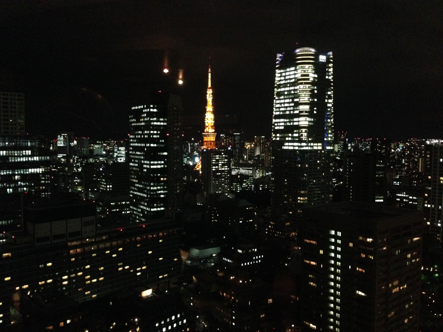 The view from the top of the ANA Intercontinental Hotel. We were there for a very special Champagne dinner. Tokyo Tower is lit up in the distance.